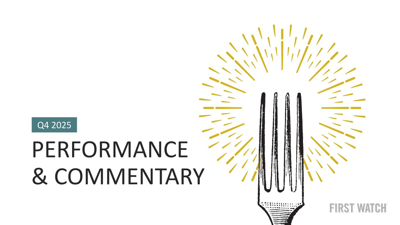 BRADENTON, Fla. —February 24, 2026— First Watch Restaurant Group, Inc. (NASDAQ: FWRG) (“First Watch” or the “Company”), the leading Daytime Dining concept serving breakfast, brunch and lunch, today reported financial results for the thirteen weeks ended December 28, 2025 (“Q4 2025”) and the 52-week fiscal year ended December 28, 2025 (“2025”) compared to the thirteen weeks ended December 29, 2024 (“Q4 2024”) and the 52-week fiscal year ended December 29, 2024 (“2024”) and provided an outlook for the 52-week fiscal year ending December 27, 2026 (“2026”).